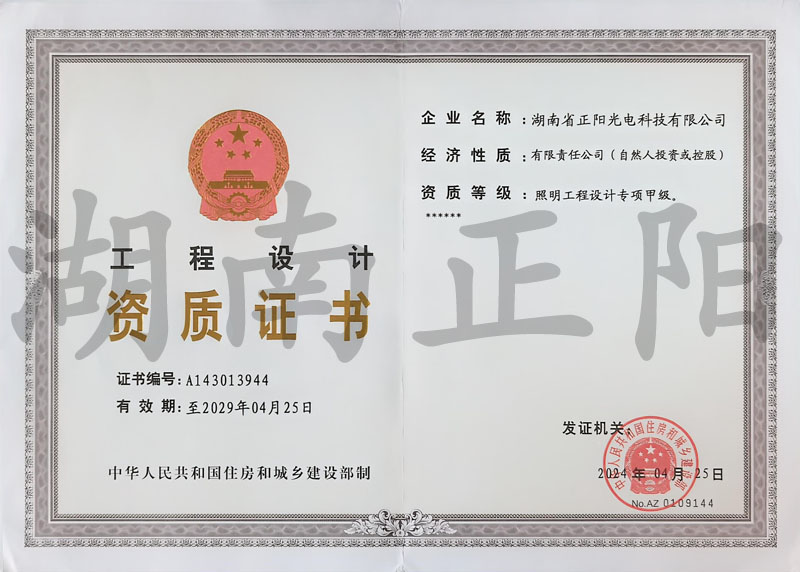 湖南省正陽光電科技有限公司是一家從事亮化工程及大型燈光藝術(shù)的設(shè)計(jì)、制作、安裝和維護(hù)于一體的專業(yè)化公司。公司資質(zhì)齊全、管理嚴(yán)謹(jǐn)、技術(shù)先進(jìn)、實(shí)力雄厚,取得了城市及道路照明工程專業(yè)承包壹級(jí)資質(zhì)、照明工程設(shè)計(jì)專項(xiàng)甲級(jí)資質(zhì)、機(jī)電工程施工總承包貳級(jí)資質(zhì)、施工勞務(wù)等資質(zhì)、國家高新技術(shù)企業(yè)、國家“重質(zhì)量·守誠信”示范企業(yè)。